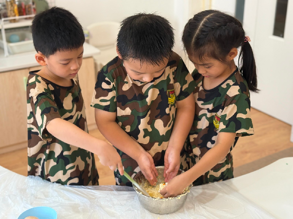 当中秋遇上国庆,孩子们在“小御厨”活动中亲手揉面、压模,制作“兔子饼干”,参与中秋传统美食的制作过程,感受劳动与分享的快乐。