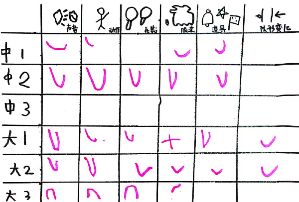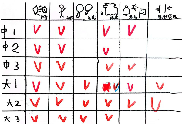 小评委们和老师一起,根据每个班级孩子们的队形、服装、演唱、道具等一一评分,看,来自孩子们的评分表……。