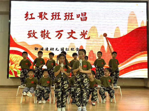 《闪闪的红星》、《红红的太阳》、《大中国》、《打靶归来》、《小红花》、《我爱北京天安门》,一首首经典的红歌在多功能厅接连唱响。孩子们深情演唱,歌声嘹亮,伴随着雄壮坚韧的旋律,用稚嫩的童音唱出了他们对祖国的热爱和真挚的祝福,一首首积极向上的红色经典歌曲,不仅让现场观众