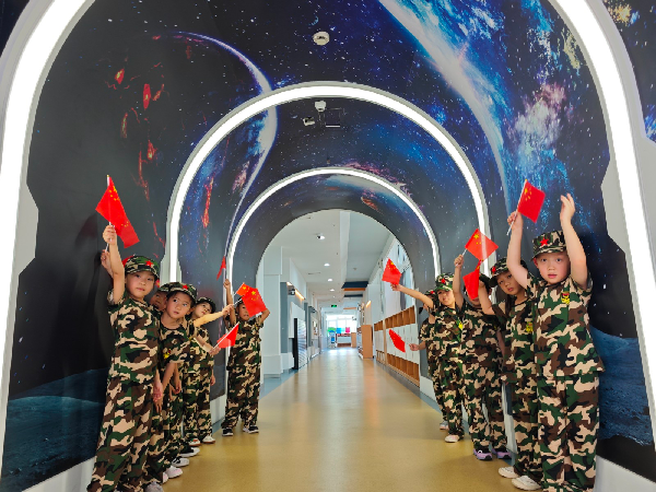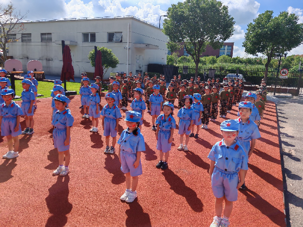 除了军事训练,孩子们还化身“小探险家”,开展校园徒步探秘活动。他们手举小红旗,带上打卡地图,结伴行走在熟悉的校园中,寻找指定打卡点,完成小任务,用实际行动感受“行走的力量”。