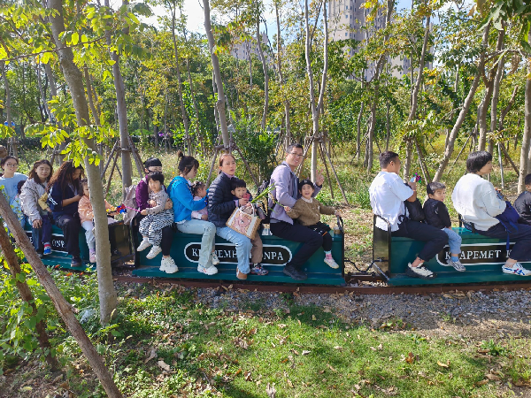 喂完小动物,就到了宝贝们最期待的“游玩时间”!大家分成小组,在老师的带领下打卡了一个个有趣的项目:在彩虹滑道上感受风的速度,尖叫声和笑声一起飞向天空;在田园小火车上“嘟嘟嘟”地前进,欣赏沿途的风景;还有充满挑战的攀爬网和秋千,每一个项目都让宝贝们玩得不亦乐乎。看着宝贝们在阳光下奔跑、跳跃的身影,仿佛连秋风都变得更加温柔了。