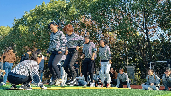 8字长绳项目中,10名教师默契配合,摇绳稳健、跳绳灵巧,绳间穿梭衔接流畅。120秒里齐心协力奋勇争先,用动感姿态传递团队力量。
