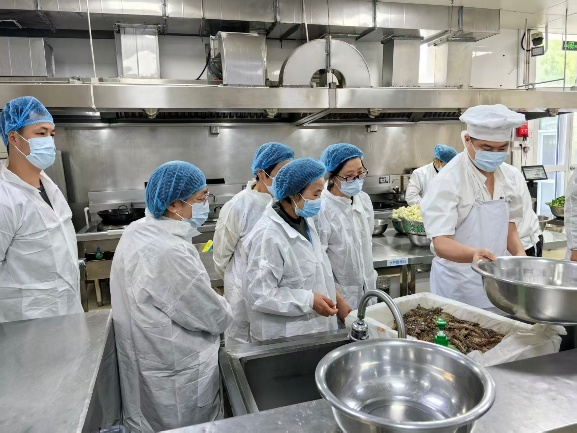 活动中,家长代表走进食堂,细致查看操作规范、食材验收、餐具消毒、食品留样及食堂卫生情况。现场进行餐具阴离子表面活性剂快速检测,结果全部达标,直观展现了食堂清洁消毒工作的严谨细致。